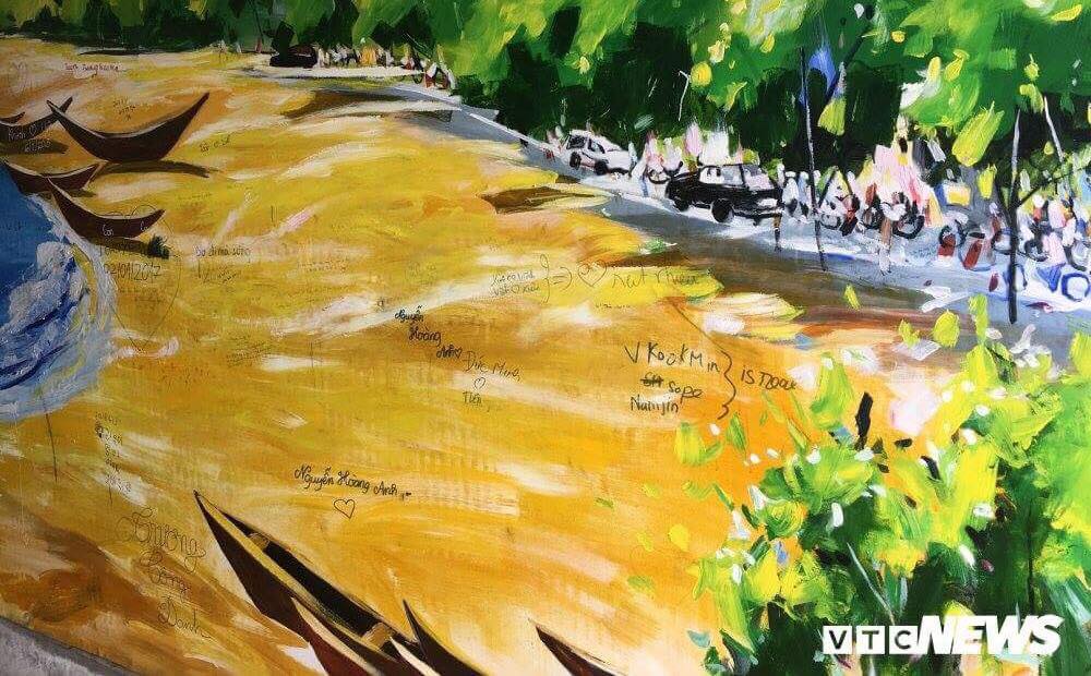 Thế nhưng, thay vì gìn giữ vẻ đẹp nguyên trạng của những bức bích họa, các bạn trẻ sau khi "no mắt" với nghệ thuật này đã vô tư thể hiện tình cảm của mình một cách thiếu ý thức.