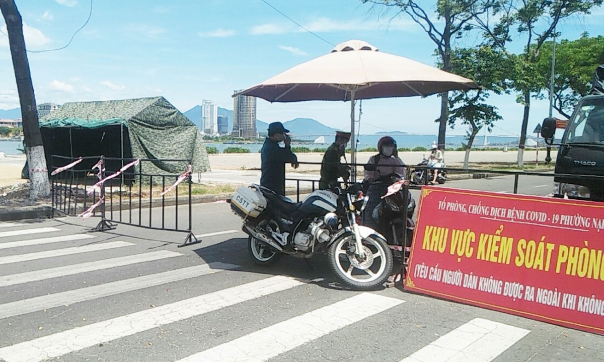 Lực lượng chức năng thiết lập khu vực phong tỏa phường Nại Hiên Đông, quận Sơn Trà, Đà Nẵng.