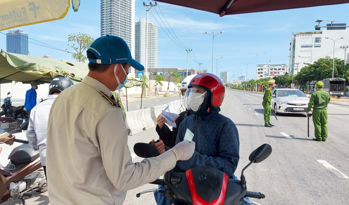 Chốt kiểm soát người và phương tiện trên đường Ngô Quyền, quận Sơn Trà, Đà Nẵng.