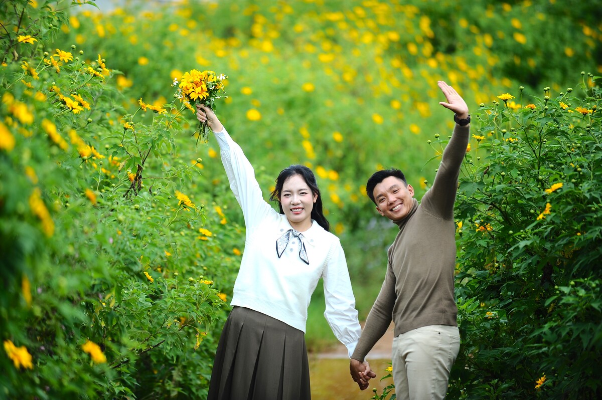 Vẻ rạng rỡ, hạnh phúc của những đôi tình nhân khi check-in cùng hoa dã quỳ tại Đà Lạt.