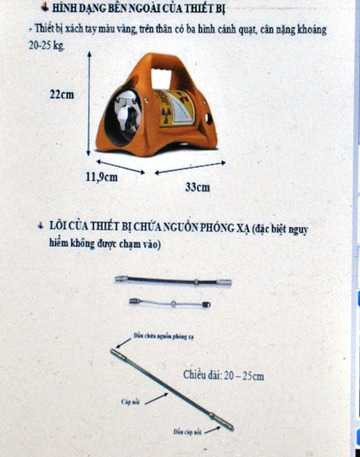 Thiết bị có hình dáng xách tay (cao 22cm, dài 33cm, bề ngang 11,9cm), màu vàng, có 3 hình cánh quạt, cân nặng từ 20- 25kg. Đây là thiết bị phục vụ công tác kiểm tra không phá hủy (NDT), nguồn phóng xạ Ir-192 có hoạt độ 20,5Curie (Ci).