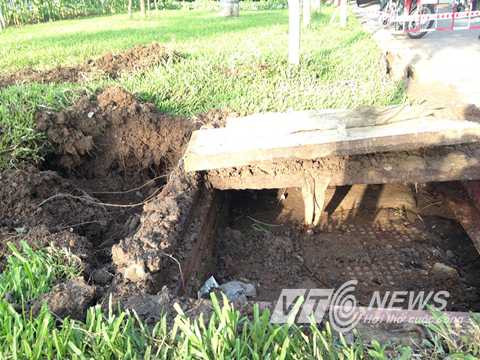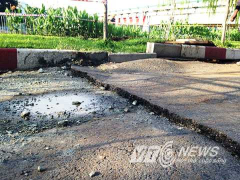 | Khu vực gần nắp hố ga vì áp lực từ nguồn nước cũng gây nứt, sụt lún |