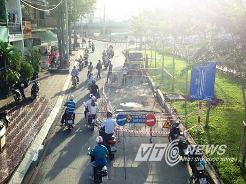 Ngay sau khi sự cố xảy ra, Công ty Thoát nước đô thị TP.HCM phối hợp cùng các đơn vị liên quan có mặt tại hiện trường khắc phục sự cố tạo điều kiện thuận lợi cho người tham gia giao thông.