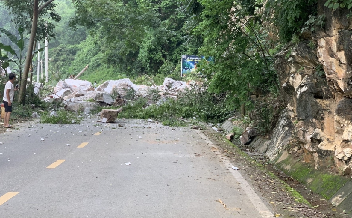 Khoảng 14h30 chiều 14/8, khu vực Km 100+510, tỉnh lộ 254 qua địa phận Bản Mới, xã Nam Cường, huyện Chợ Đồn (Bắc Kạn) xảy ra sạt lở khiến hàng trăm khối đá lớn nhỏ vùi lấp toàn bộ mặt đường.