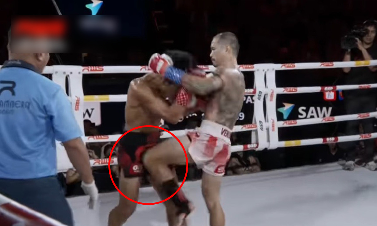 Jomhod hạ gục đối thủ bằng đòn lên gối trúng hạ bộ.