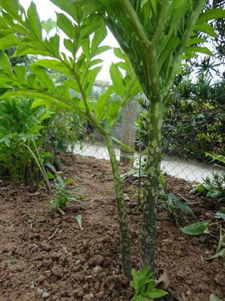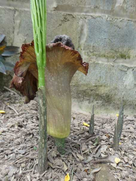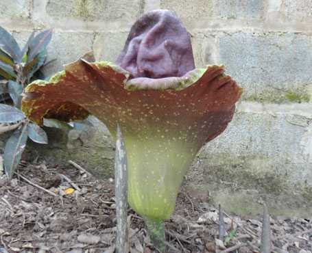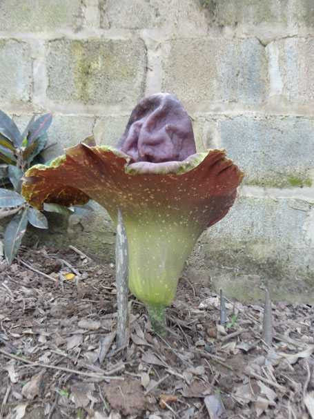 Như tin đã đưa, ngày 15-5-2013 có bông hoa lạ mọc từ mặt đất chưa rõ là hoa gì. nhưng đến nay, chồi non cạnh bông hoa đã bung rõ lá. Những lá này là lá cây khoai na. Như vậy, đã xác định được hoa lạ ở thái bình là hoa của cây khoai na.