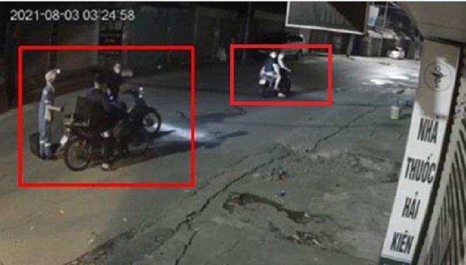 Nhóm cướp gồm một nam thanh niên lái xe máy hiệu Wave màu cam, mặc áo phông ngắn tay màu ghi, mặc quần sooc ngắn màu đen, dáng người gầy, cao khoảng 1m65, đội mũ bảo hiểm lưỡi trai màu xanh, bịt khẩu trang màu trắng. Ngồi sau chiếc xe này là một nam thanh niên mặc áo phông ngắn tay màu đen, quần sooc bò màu xanh.