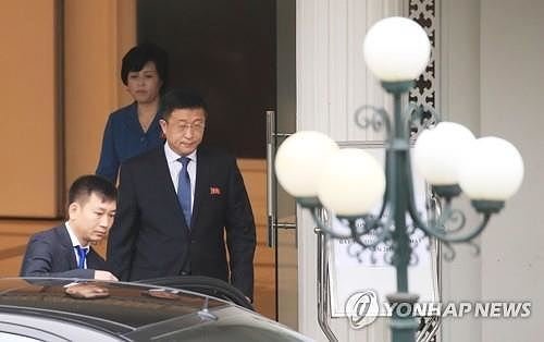 Đặc phái viên Triều Tiên Kim Hyok-chol rời khỏi nhà khách ở Hà Nội sáng 22/2 để đi họp với đặc phái viên Mỹ. (Ảnh: Yonhap)