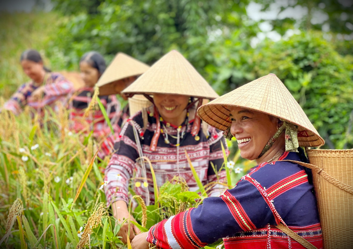 Hòa mình vào đội cồng chiêng đầy sống động của Lễ hội lúa mới, dân làng vừa uống rượu vừa hát dân ca, rồi vào từng nhà thăm, chúc sức khỏe để năm sau tiếp tục có một mùa bội thu.