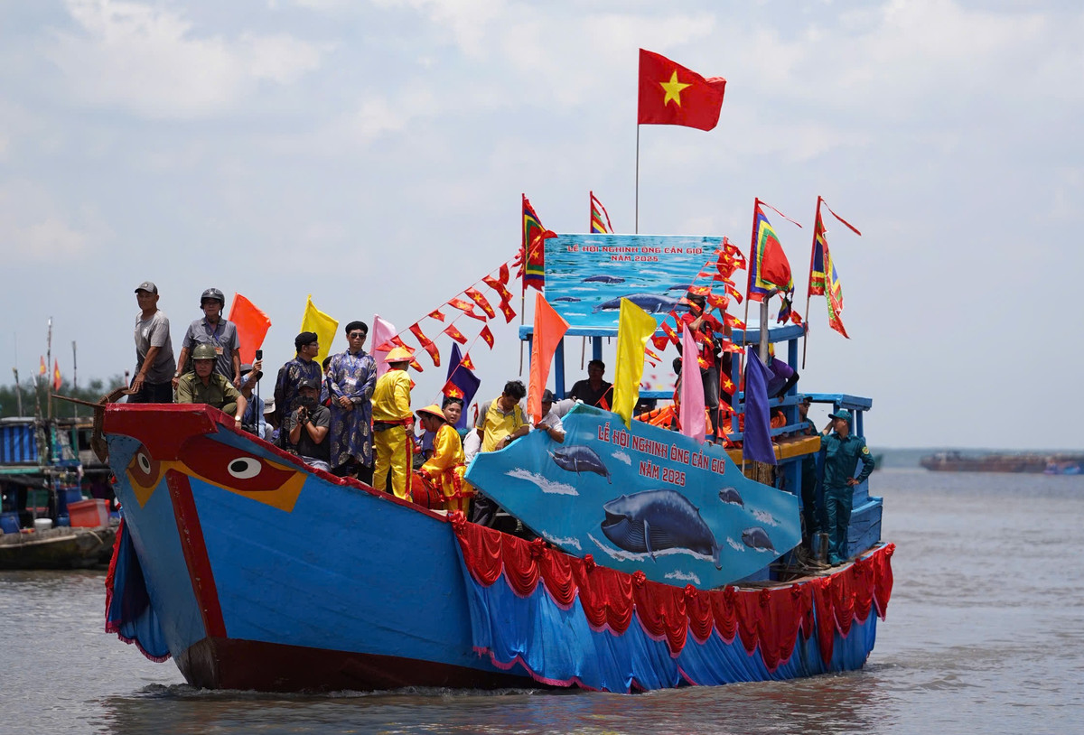Giữa cửa biển Cần Giờ, đoàn ghe thuyền nối dài cả cây số, tạo nên khung cảnh tuyệt đẹp. Tiếng chiêng trống hòa cùng lời khấn nguyện vang lên: “Cầu cho trời yên biển lặng, tôm cá đầy khoang, người đi bình an trở về”.