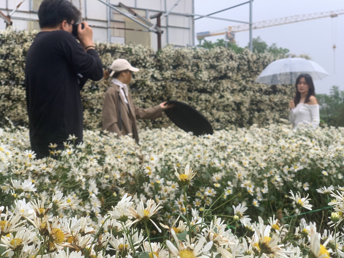 Không ít các tay máy chuyên nghiệp ở Hà Nội khoảng gần 1 tháng nay đã lấy địa điểm này làm “cơ sở hoạt động thường xuyên" để mời chào khách. Anh Lê Xuân Huy - nhiếp ảnh gia nghệ thuật trú tại phường Ngọc Khánh, quận Ba Đình- cho biết, tính từ đầu vụ anh đã chụp được khoảng 12 bộ ảnh cúc họa mi cho các khách hàng. Hiện tại vẫn đang có khoảng 3 khách chờ chụp ảnh vì mấy hôm gần đây, mưa kéo dài buộc phải lùi lịch.