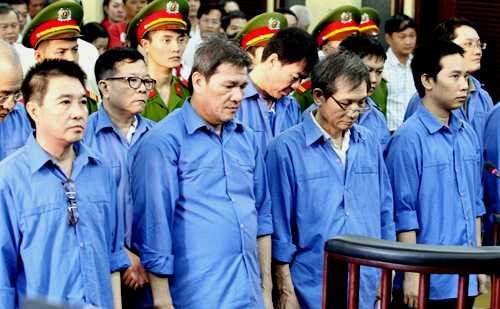 Bốn bị cáo Lê Thành Công, Đỗ Trọng Nhân, Thái Cường và Lê Sơn Hùng bị phạt từ 8 - 25 năm tù về các tội “Lạm dụng chức vụ, quyền hạn chiếm đoạt tài sản”, “Lợi dụng chức vụ, quyền hạn trong khi thi hành công vụ”, “Lạm dụng tín nhiệm chiếm đoạt tài sản”, “Chiếm đoạt tài sản”; Phạm Hoàng Thọ tội “Che giấu tội phạm” và lãnh 4 năm tù giam. Sau bản án sơ thẩm, 4 bị cáo Dương Thanh Cường, Lê Thành Công, Hồ Đăng Trung và Đỗ Trọng Nhân kháng cáo kêu oan, xin giảm nhẹ hình phạt và thay đổi tội danh.