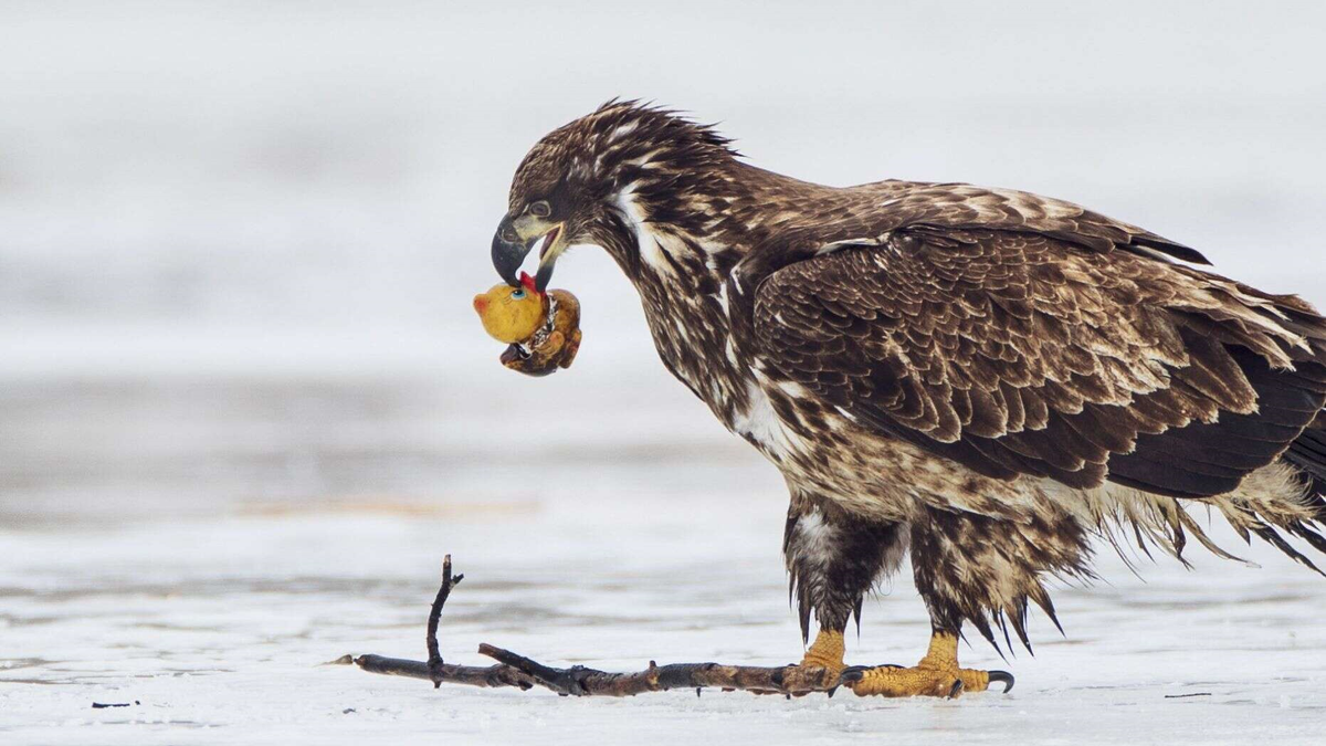 Con đại bàng tưởng nhầm con vịt nhựa là thức ăn. (Ảnh: SWNS)