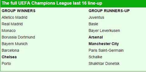 | 16 đội bóng đi tiếp Champions League |