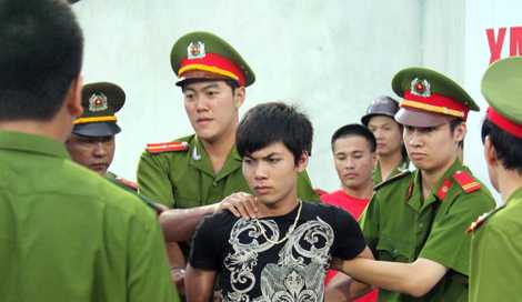 CĐV quá khích bị lực lượng an ninh sân áp tải ra khỏi sân (Ảnh: Thành Phạm)