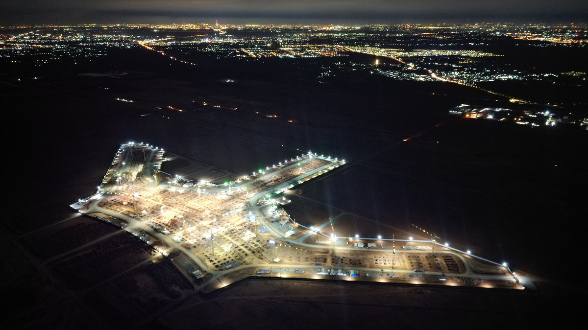 Bức tranh ánh sáng tuyệt đẹp giữa trời đêm được tạo nên bởi công trường thi công dự án nhà ga hành khách sân bay Long Thành.