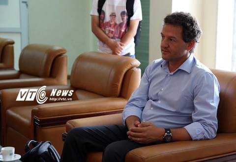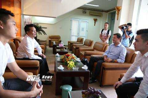 | Ông Francisco Lopez trò chuyện cùng giám đốc điều hành CLB Hà Nội T&T Nguyễn Quốc Hội (Ảnh: Nhạc Dương) |
