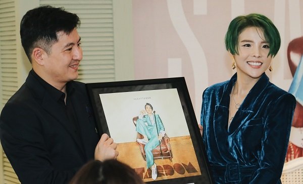 Vũ Cát Tường nhận chứng nhận từ ông Kenny Ong - đại diện UMG.