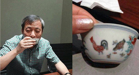 Sự việc gây chú ý dư luận không chỉ vì giá trị của đồ cổ mà còn ở thú chơi ngông của người sở hữu nó. Ông Khiêm đã sung sướng ngồi thưởng trà bằng chiếc chén này.