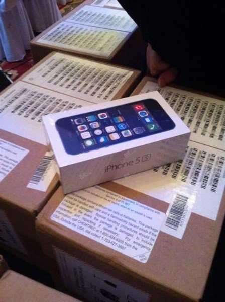 | Những chiếc Iphone 5s xếp hàng chờ trao đến tay người tham dự tiệc cưới |