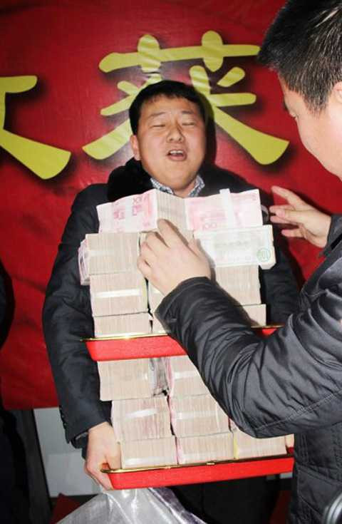 Mới đây, một công ty xây dựng tại tỉnh An Huy (Trung Quốc) đã xếp số tiền thưởng Tết 2016 cho công nhân thành một núi tiền khổng lồ. Những cọc tiền được xếp cao tới nỗi các công nhân phải nghển cổ lên để ngắm nhìn khi họ xếp hàng chờ lĩnh thưởng .
