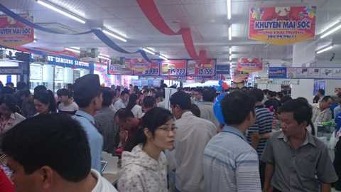 Người xem, người mua xếp hàng chật kín từ đường vào tới cửa siêu thị. Nắm được tâm lý khách hàng, Trần Anh đã giảm hầu hết các mặt hàng từ điện tử, điện lạnh tới các mặt hàng công nghệ thông tin. Các sản phẩm như tivi 24 in chỉ có 3,199,000đ, Samsung Note 3 giảm 3,2 triệu còn 12,689,000đ, Lò vi sóng giảm 43% còn 1,299,000đ, nồi cơm điện Sharp giảm 30% còn 1,399,000đ, quạt mát giảm 42% đã kích thích nhu cầu mua sắm của khách hàng.