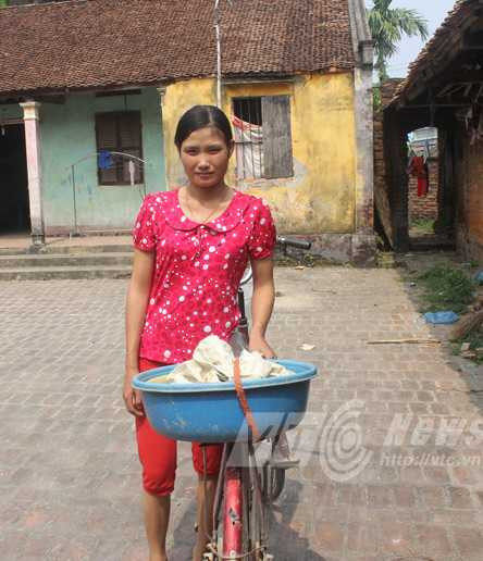 Tạ Thị Huệ sinh năm 1991, mới ngoài 20 tuổi đã thành góa phụ. Khuôn mặt, dáng dấp Huệ đều toát lên vẻ khổ hạnh. Huệ đạp chiếc xe lọc cọc, với cái thúng đằng sau về tiếp khách.