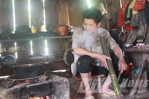 Thấy người lạ vào nhà, người đàn ông này nở nụ cười rất tươi, rồi tiếp tục châm thuốc lào hút, mặc kệ người lạ. Ngồi nói chuyện với anh ta, thì cứ mỗi phút anh ta lại châm thuốc lào hút một lần. Anh Nông Văn Huy nói tiếng Dao, thì anh chàng này lại nói tiếng Kinh, dù chữ được chữ mất. Hóa ra, anh ta ít nói, có lẽ ít gặp người lạ, chứ không phải không biết tiếng.