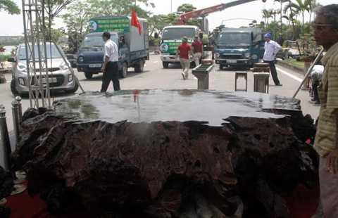 | Ngoài bộ bàn ghế “ngũ long”, chiếc bàn gù hương nguyên khối có kích thước rộng chừng 3m2, nặng hàng tấn cũng là “của hiếm” có một không hai. |