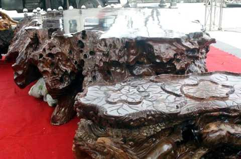 | Tác phẩm nghệ thuật có một không hai này được làm bằng gù hương - loại gỗ tinh dầu thuộc nhóm những loại gỗ quý hiếm của vùng núi đá Hà Giang, Lạng Sơn, Tuyên Quang. |