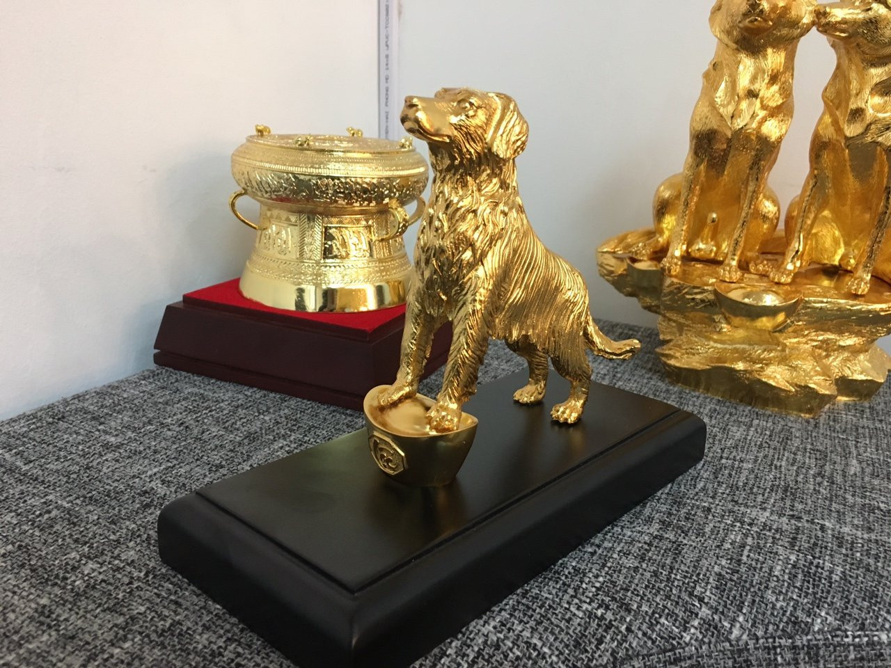 Một cửa hàng chuyên chế tác các sản phẩm từ vàng trên phố Xã Đàn (Đống Đa, Hà Nội) năm nay tung ra thị trường linh khuyển mạ vàng 24k có giá bán từ 7 – 40 triệu đồng, đa phần có kích cỡ vừa và nhỏ.