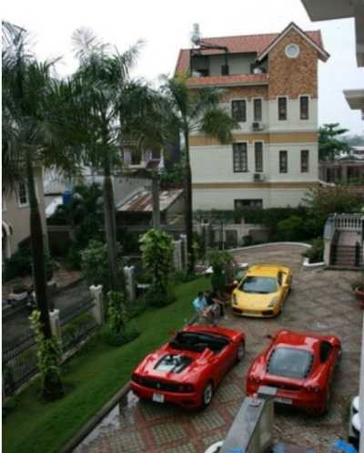 | Những chiếc xế sang đậu trong sân biệt thự nhà Cường đô la. |
