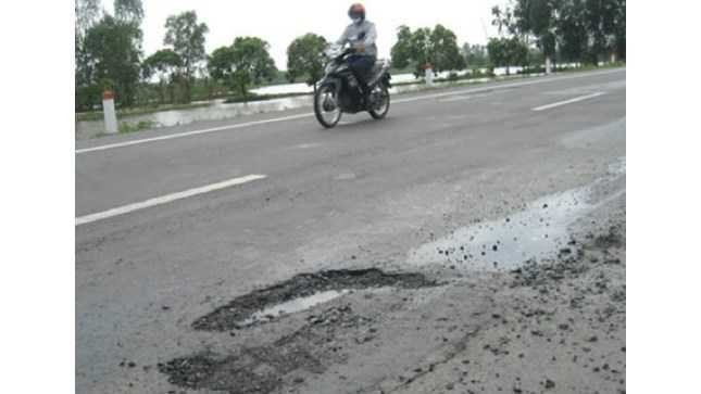 Một điểm hư hỏng trên đường nối Vị Thanh – Cần Thơ