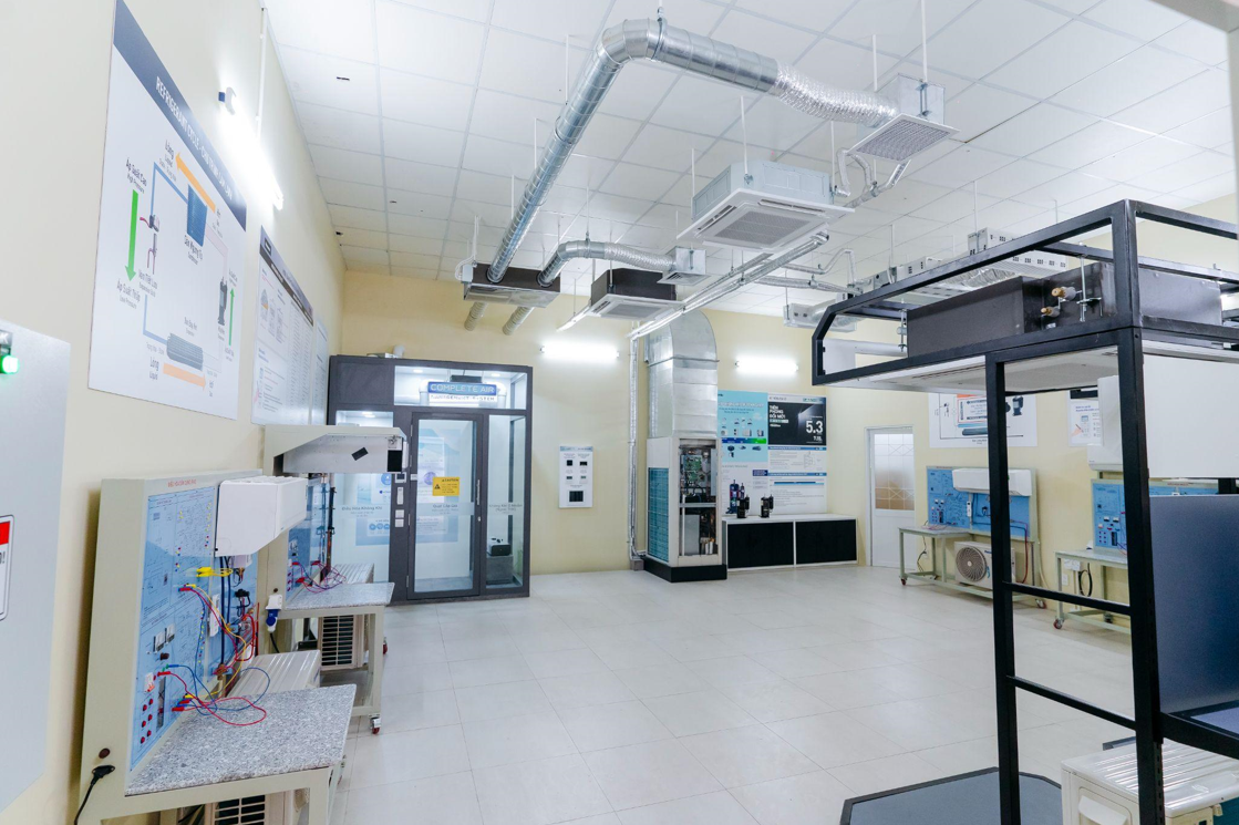Phòng thí nghiệm Giải pháp HVAC (Hệ thống sưởi ấm, thông gió và điều hòa không khí) được trang bị hệ thống giải pháp không khí chuyên nghiệp của Panasonic, bao gồm giải pháp điều hòa không khí, hệ thống thông gió, công nghệ lọc không khí và hệ thống quản lý chất lượng không khí toàn diện (CAMS), hứa hẹn mang đến nhiều giá trị thực tiễn trong quá trình đào tạo.