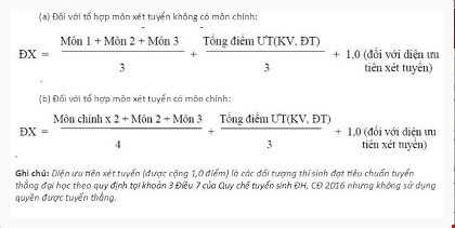 Đối với thí sinh thuộc diện ưu tiên xét tuyển (được cộng 1,0 điểm) là các đối tượng thí sinh đạt tiêu chuẩn tuyển thẳng đại học theo quy định tại khoản 3 Điều 7 của Quy chế tuyển sinh ĐH, CĐ 2016 nhưng không sử dụng quyền được tuyển thẳng.