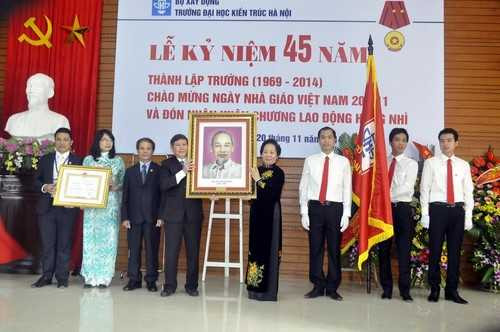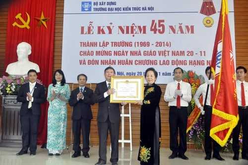 Hôm qua (20/11), Trường Đại học Kiến trúc Hà Nội tổ chức lễ kỷ niệm 45 năm thành lập Trường và đón nhận Huân chương Lao động hạng Nhì của Chủ tịch nước.