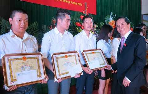 | PGS.TS Triệu Văn Cường, Thứ trưởng Bộ Nội vụ, Hiệu trưởng ĐH Nội vụ Hà Nội trao giấy khen cho các sinh viên xuất sắc |