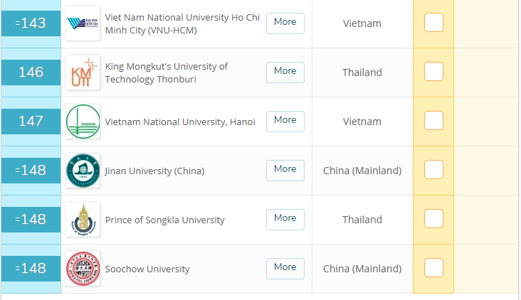 Trong đó, Đại học Quốc gia TP.HCM được xếp thứ hạng 143, tăng 58 bậc so với năm 2016.
