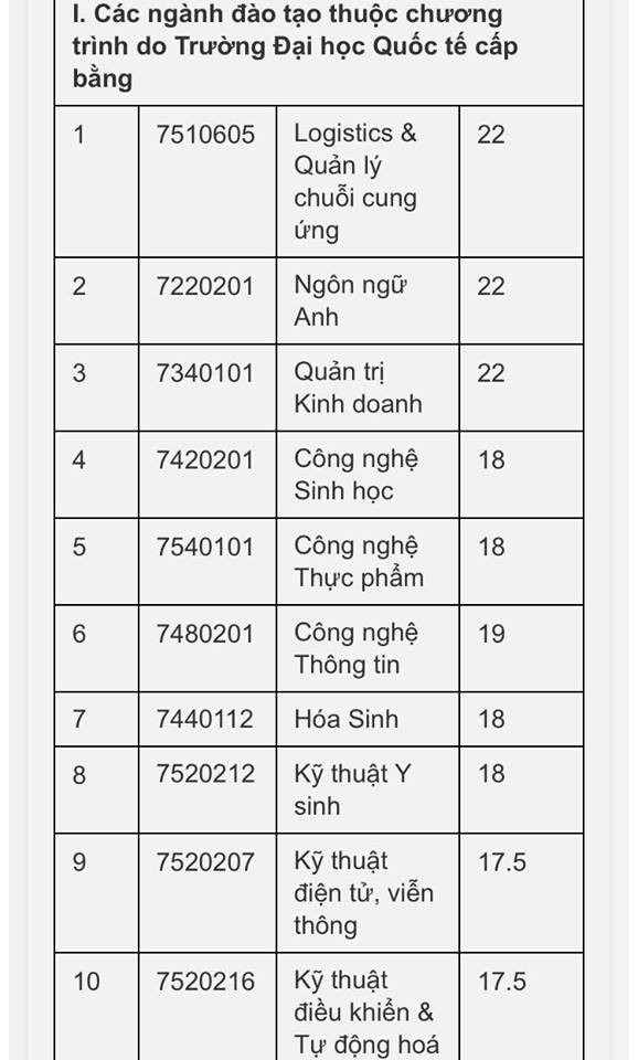 Trường Đại học Quốc tế TP.HCM vừa công bố điểm chuẩn điểm trúng tuyển cho các ngành đào tạo thuộc chương trình do Trường Đại học Quốc tế cấp bằng và tất cả các ngành thuộc chương trình liên kết.
