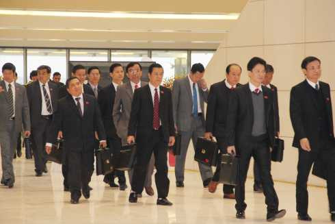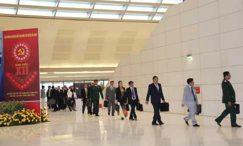 | Các đại biểu tham dự Đại hội Đảng XII tiến vào hội trường sáng 20/1. (Ảnh: Quang Tùng) |