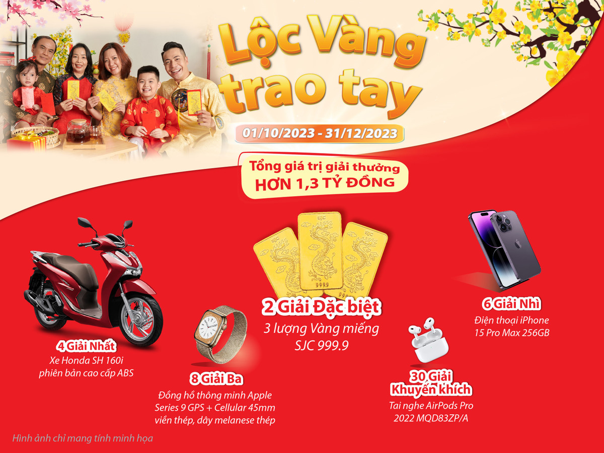 Tiếp nối chuỗi các chương trình tri ân khách hàng hấp dẫn, quy mô và xuyên suốt trong thời gian qua và hướng đến chào đón năm mới 2024 với nhiều hứng khởi và may mắn, Dai-ichi Life Việt Nam tiếp tục triển khai chương trình khuyến mại “Đón xuân hạnh phúc, lộc vàng trao tay” dành cho khách hàng trên toàn quốc có hợp đồng bảo hiểm được phát hành từ ngày 1/10/2023 đến hết ngày 31/12/2023 với 50 giải thưởng hấp dẫn có tổng trị giá hơn 1,3 tỷ đồng, bao gồm: