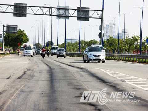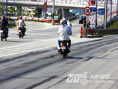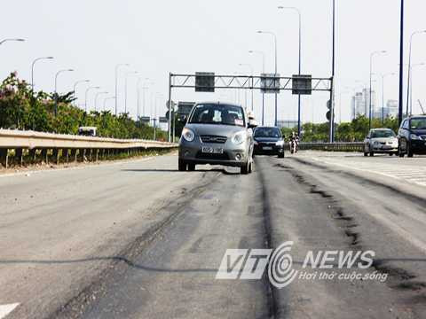 Có đoạn mặt đường tạo thành những cái hố sâu, nhựa trồi lên gần đụng cả gầm xe ô tô loại 4 chỗ khiến nhiều tài xế chỉ biết "né" men lên phía trên. Đáng nói, tại nút giao thông này còn cho phép xe gắn máy chạy chung vào làn đường ô tô để lên cầu vượt Cát Lái hướng về cầu Sài Gòn nên rất nguy hiểm.