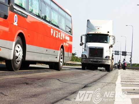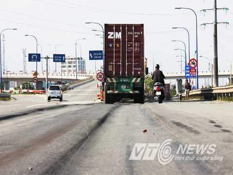 “Tôi thường xuyên chở hàng bằng xe container ra cảng Cát Lái bằng đường này riết nên cũng quen rồi. Trươc đây, thời điểm đường mới bị sụt lún, xe tôi chở hàng nặng nên bị lạc tay lái hoài nhưng may không bị sao", tài xế tên Nhật (ngụ Bình Dương) nói.