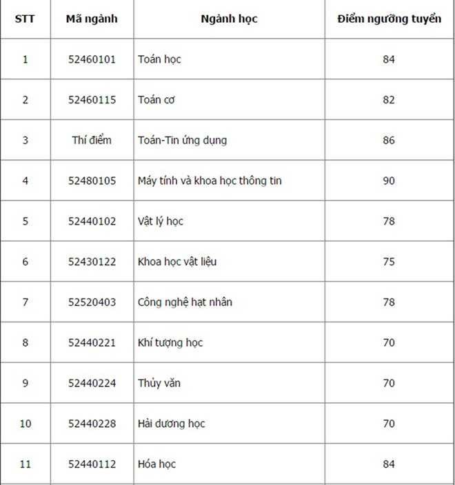 Điểm chuẩn trường ĐH Khoa học Tự nhiên