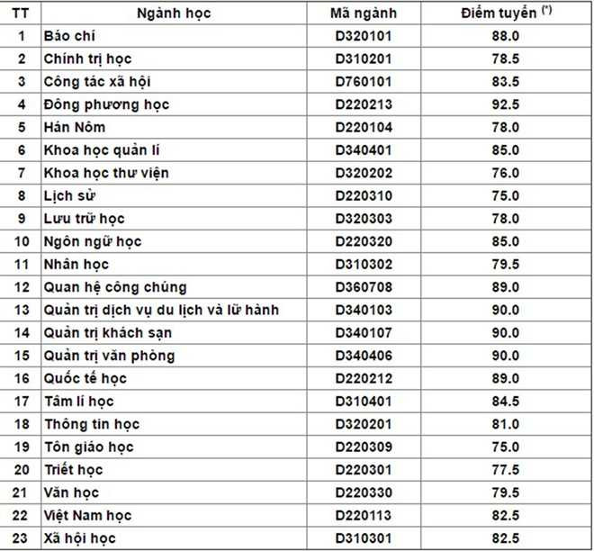 ![]() Điểm chuẩn ĐH Khoa học Xã hội và Nhân văn. |