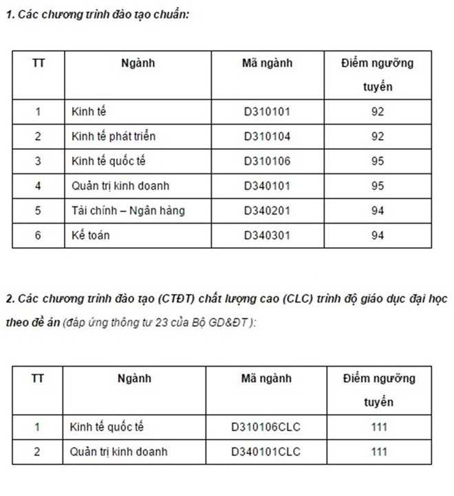 ![]() Điểm chuẩn Đại học Kinh tế. |