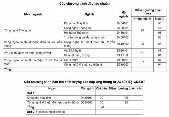 ![]() Điểm chuẩn Đại học Công nghệ. |