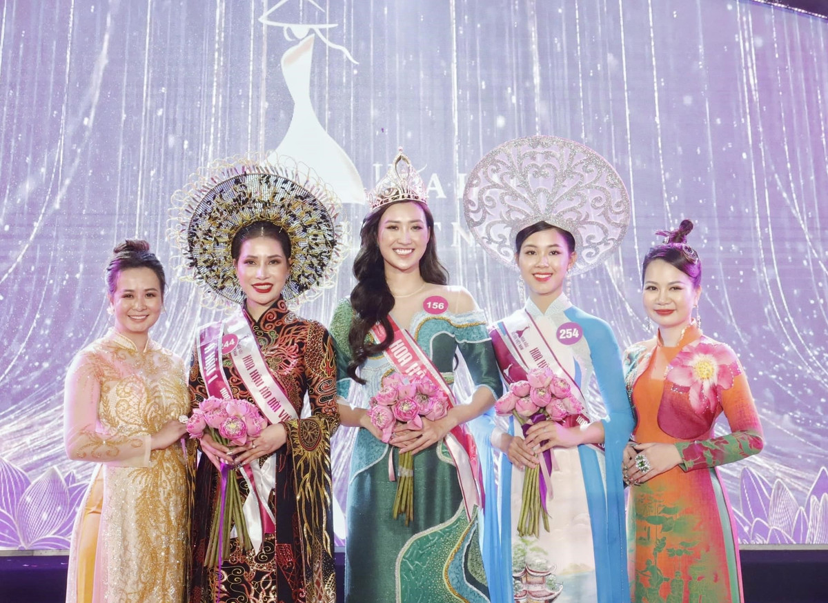 Đại sứ hình ảnh cuộc thi Hoa hậu áo dài Việt Nam Phạm Thu Thủy cùng với BTC và các thí sinh trong đêm chung kết.