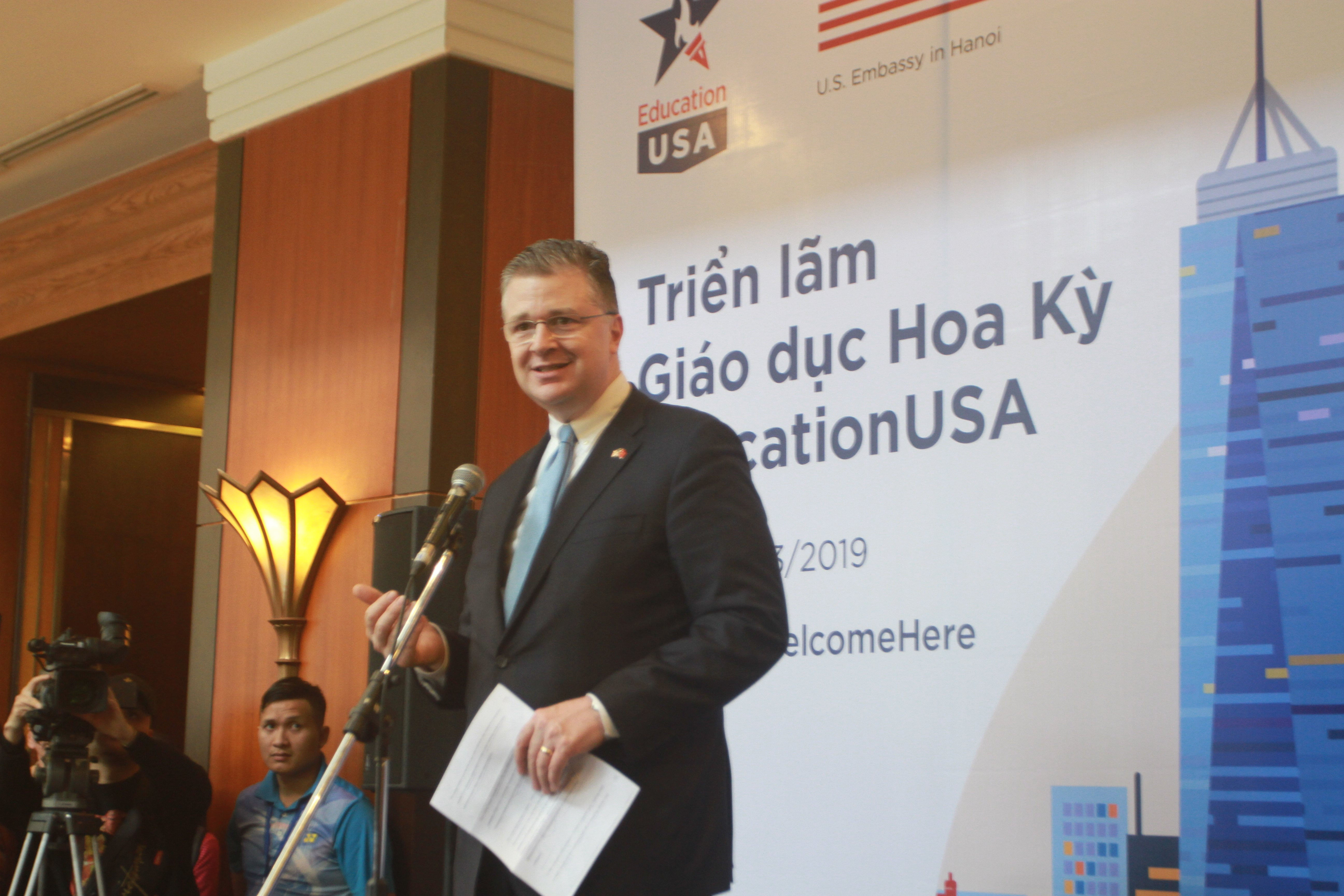 Đại sứ Mỹ tại Việt Nam Daniel Kritenbrink khai mạc Triển lãm Giáo dục đại học Hoa Kỳ Mùa Xuân 2019 và chia sẻ những thông tin về chương trình giáo dục cũng như hợp tác song phương về giáo dục giữa Việt Nam và Mỹ.