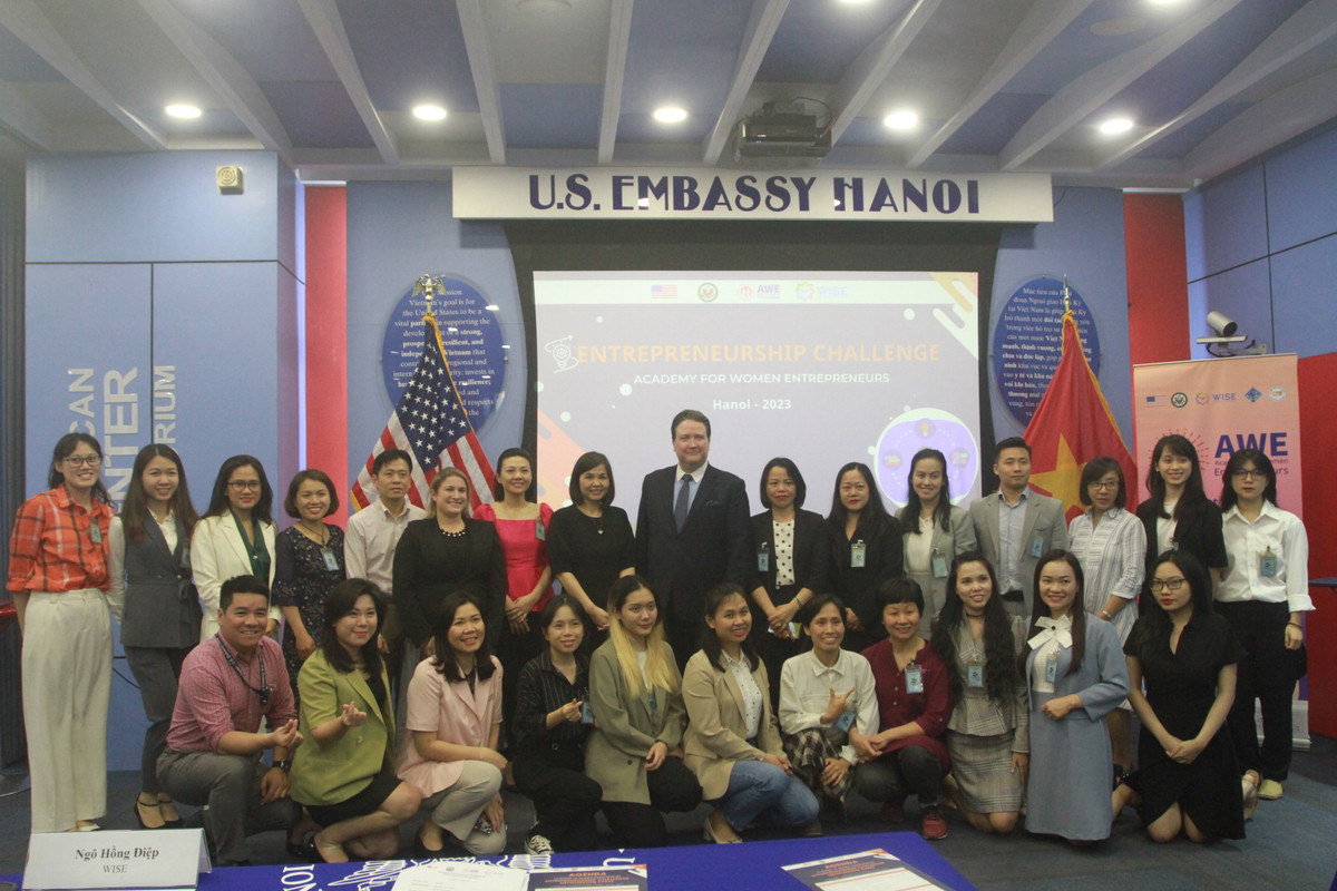 Chiều 17/4, 11 công ty khởi nghiệp và doanh nghiệp trẻ có ý tưởng kinh doanh xuất sắc tham gia tranh tài trong vòng chung kết cuộc thi thử thách khởi nghiệp toàn quốc của Học viện đào tạo nữ doanh nhân Việt Nam (AWE) năm 2023. Chương trình do phái đoàn ngoại giao Mỹ tại Việt Nam phối hợp với Sáng kiến hỗ trợ phụ nữ khởi nghiệp kinh doanh (WISE) thực hiện, đã triển khai tại hơn 100 quốc gia với 25.000 người tham gia trên khắp thế giới.